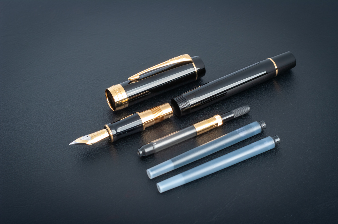 Перьевая ручка Parker Duofold Classic Centennial Black GT (F) от официального дилера Parker в Елеце. Вы можете дополнительно заказать гравировку, которая подчеркнет Вашу оригинальность и придаст памятность статусному подарку. Все ручки Паркер поставляются в фирменном футляре.